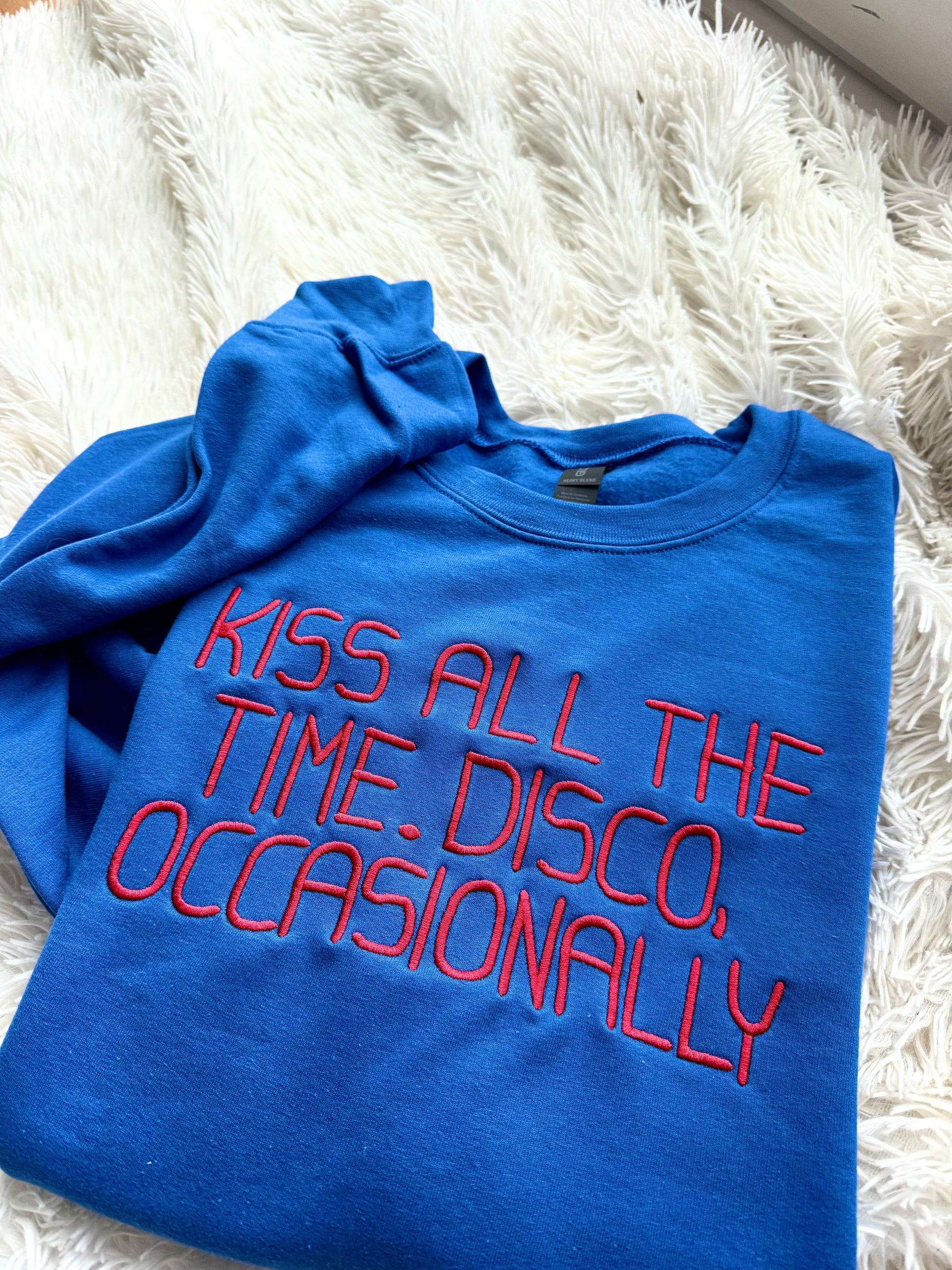 This item is embroidered on the Gildan HeavyBlend™ Crewneck. Please check the size chart provided in our listing photos to ensure you order the correct size.